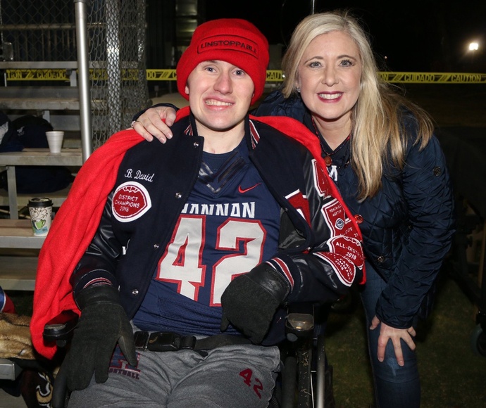 Although his speech is not fully restored, Brendan can communicate, even making a speech at a recent fundraiser. Messages of encouragement from friends and strangers, seeing his 42 Strong: Brendan’s Miracle magnets on cars and news coverage have made him feel like a celebrity. “His favorite was being honored at a Hannan High football game. I’m grateful for his attitude, because with all the progress, we still have devastating disappointments. We’re going on his sixth surgery – the third skull removal. Each time it doesn’t take, it’s a months-long setback. I ask him if he understands, and he smiles and sings the Humpty Dance song because he says he looks like Humpty Dumpty without his skull.”