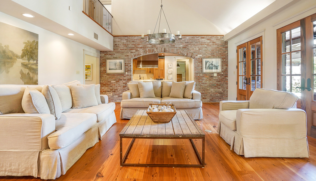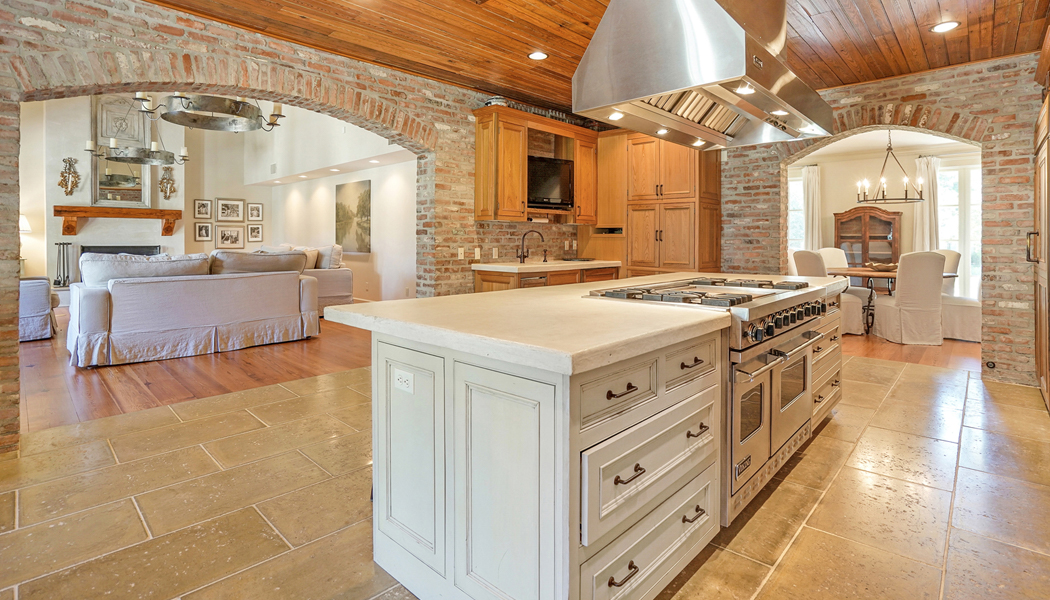 Margaret’s grandparents owned a pharmacy in downtown Madisonville decades ago, and the building had long since been sold and fallen into disrepair. Upon undertaking the renovation project, the Zelenkas heard through the grapevine that the old building was going to be taken down, and they inquired about purchasing the old floorboards to use somewhere in their home during the remodel. Tony laughs, “But they wouldn’t just sell us the floor—we had to buy the whole thing!” One day, they rented a truck and drove to Madisonville to load each and every board themselves. Every bit of the old heart pine was still heavy with sap and richly colored, as only the old species of wood can be, and even the exterior boards were able to be salvaged for re-use. From hefty floor joists to old bricks, almost all the elements of the old building can now be found inside the renovated interior of their home.