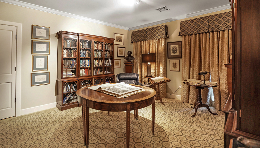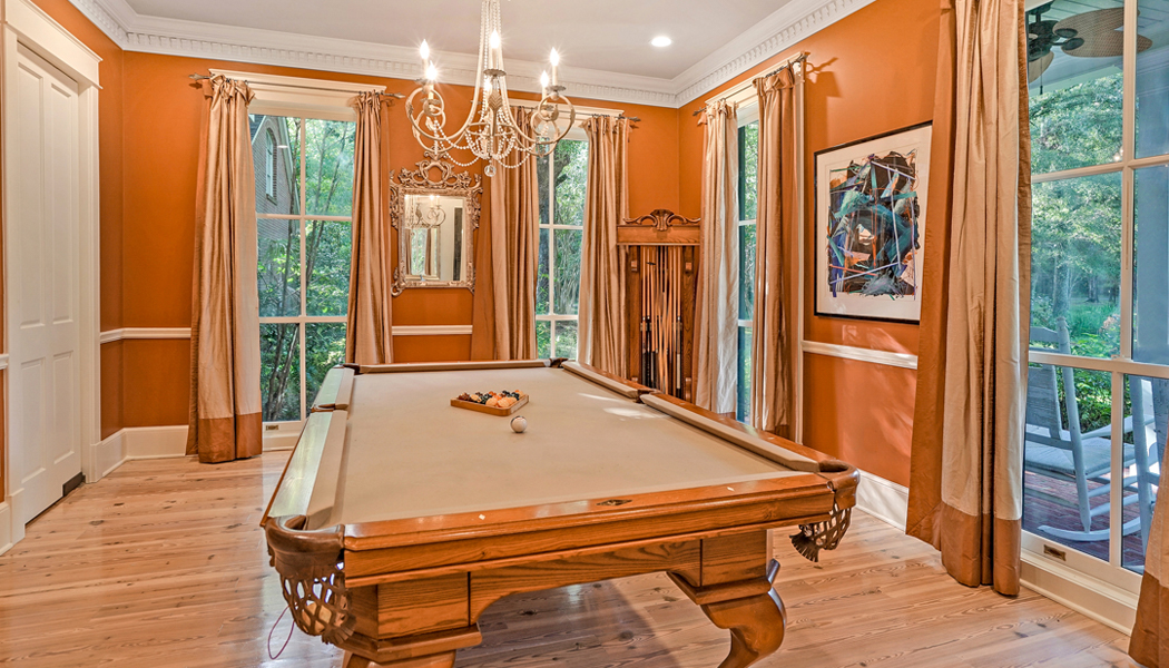 “Every person was able to have their dream in this house,” Bobby says. The couple added a tennis court for playing together and they loved to fish in the front pond as well as spend time by the pool. Having the family together is something that comes naturally to Bobby, who referenced his own youth spent with cousins in his grandfather’s fine cabinetry workshop. “They put us boys in there to keep us out of trouble,” he chuckles. With that history, quality woods and handmade furniture are meaningful to him and show up throughout the home in the wide-plank wood floors and artisan quality furnishings.