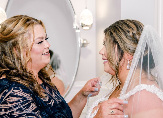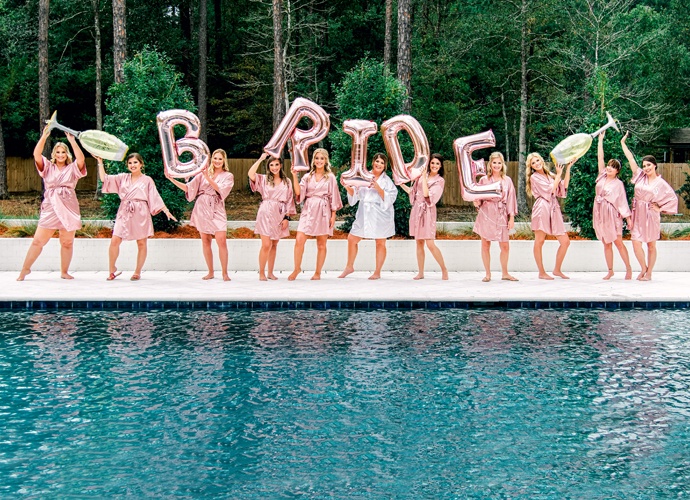 Following a rehearsal at Benedict’s on Friday, the wedding party and guests enjoyed pre-ceremony festivities at The 19th Hole in Covington. On the day of the wedding, Amber and bridesmaids enjoyed the hospitality of her aunt, Toni Celestin, at her home in Brookstone where the girls enjoyed festive decorations and party food as they got ready for the once-in-a-lifetime event. Aunt Toni further surprised Amber by inviting photographer Paige to document the pre-ceremony celebration.