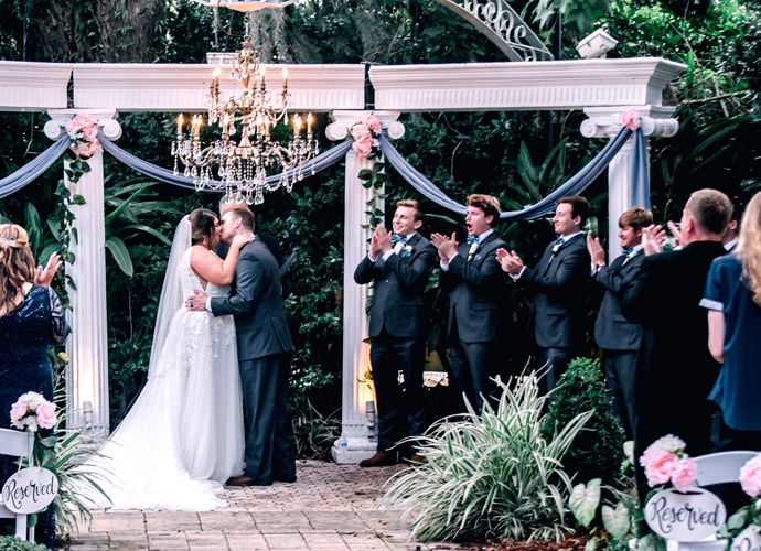 On the recommendation of a friend, Amber and Eli selected Paige Kirkland to capture the event in pictures with videography by Chuck Billiot. The couple also chose those with personal connections to help celebrate the day. Eli’s former baseball coach, Jeff Tircuit, with Mobile Beat Entertainment provided music along with lighting and a photobooth, and family friend Lucien Gunter presided as the officiant.