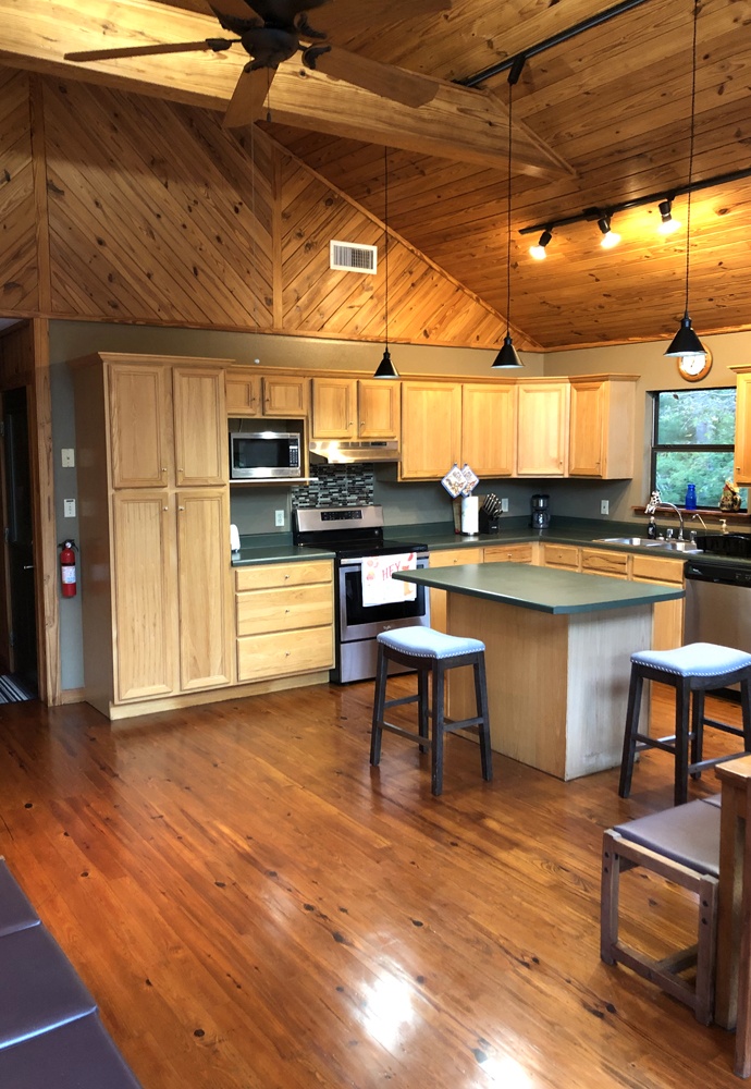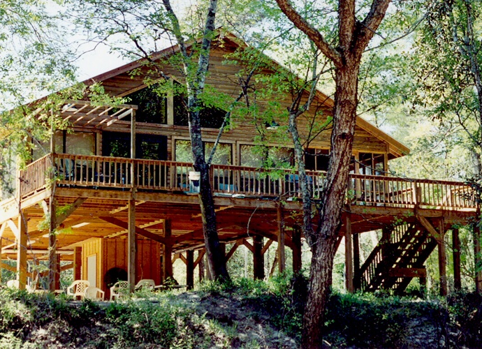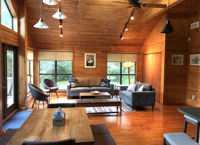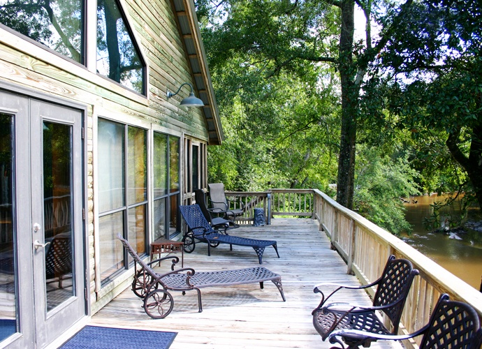 The couple also eagerly recounts their care in building the raised cabins that feature a panoramic view of lush surroundings through walls of windows, porches and decks. Describing favorite activities, Denise adds, “Each visit is different based on the season, the creek height and whether we want to relax or explore.” They are equally enthusiastic about water sports like tubing and toy boat races with the kids; a sighting of migrating Indigo Buntings and other wildlife in the cypress swamp affectionately called The Dee’s Knee’s; playing rainy-day games on the concrete under the cabins; or simply finding “just the right piece” of driftwood on their morning hike. No matter the season or the activity, they agree, Bolo Creek Cabins are the perfect place to decompress and rediscover the power of nature to rejuvenate the body and the soul.