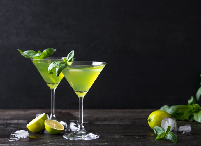 Put four basil leaves in a cocktail shaker and muddle gently with a wooden spoon. Add the gin, dry vermouth, lime juice and simple syrup. Fill with ice, shake vigorously and strain into a chilled martini glass. Garnish with the remaining basil leaf.