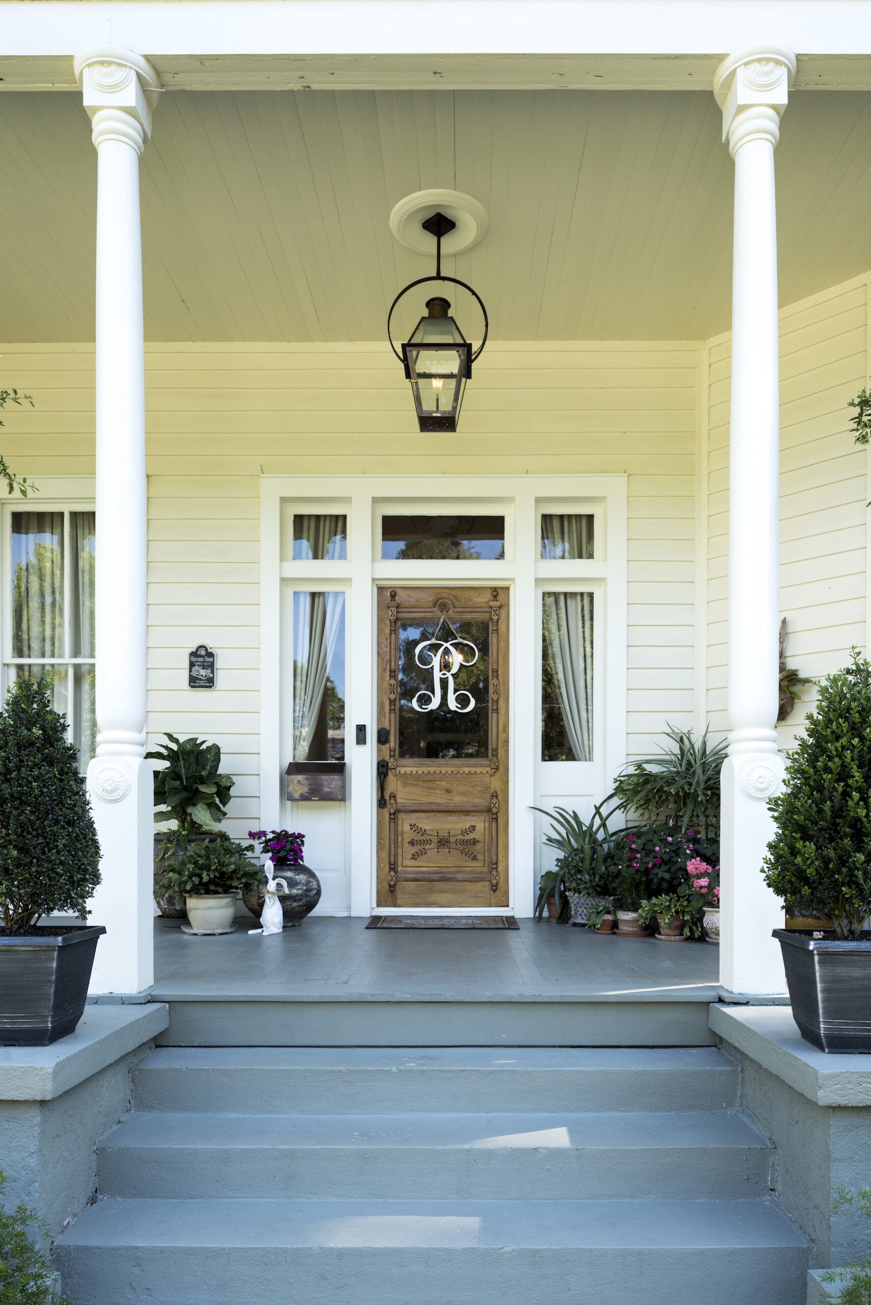 Even the recent plantings were done with the age of the house in mind. Gina purposely selected traditional species like magnolias, sasanquas and crepe myrtles to anchor the landscape. Bits of color pops with the addition of hydrangeas and climbing roses. The ladies of the house spend a good bit of time outdoors. Here, they know all their neighbors and recognize almost everyone who walks by or rides bikes past the house. This particular area is perfect for walkability, with its close access to all the activities of downtown Covington. Even school is within walking distance, and because everyone knows everyone else, safety is a prized feature of the neighborhood.