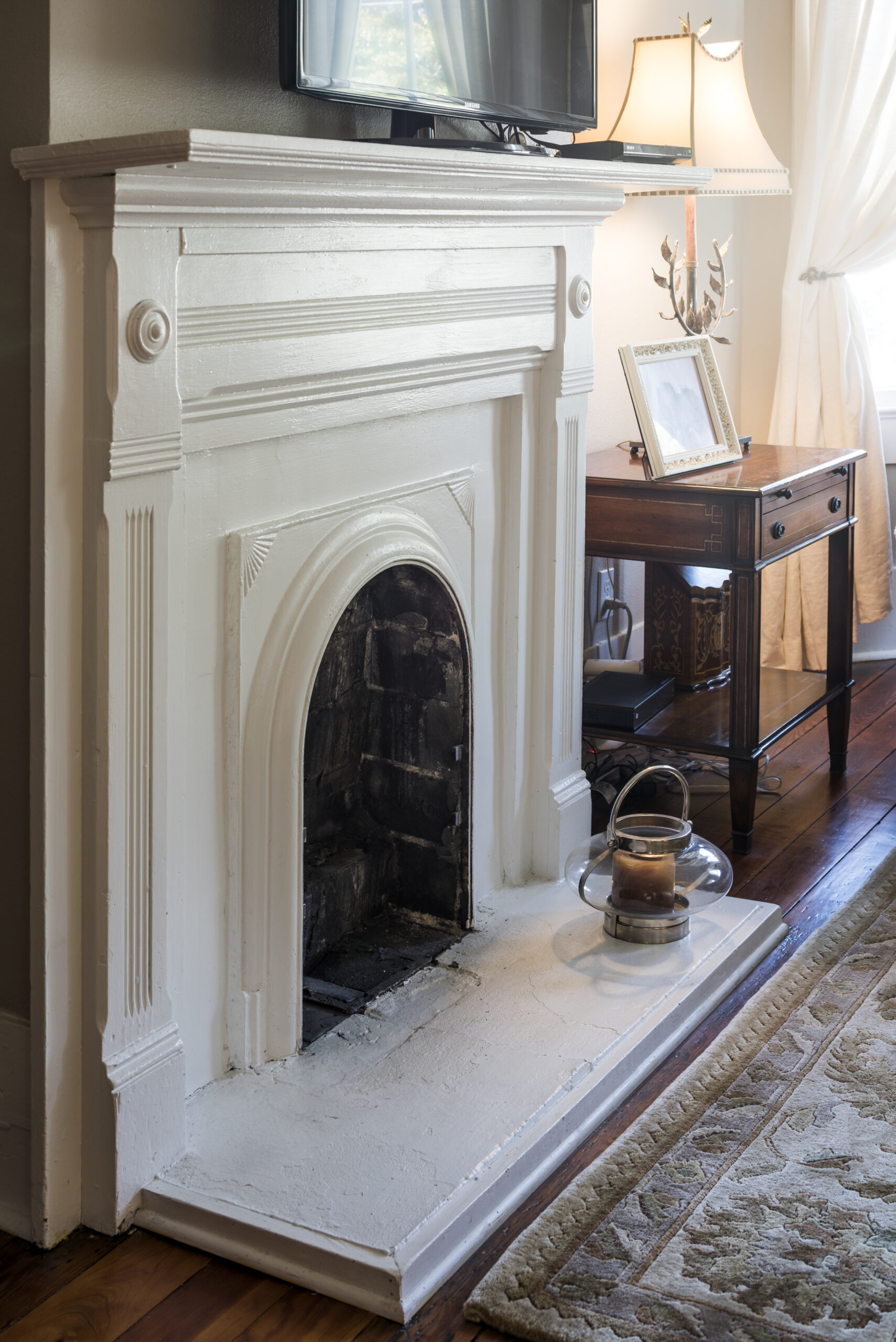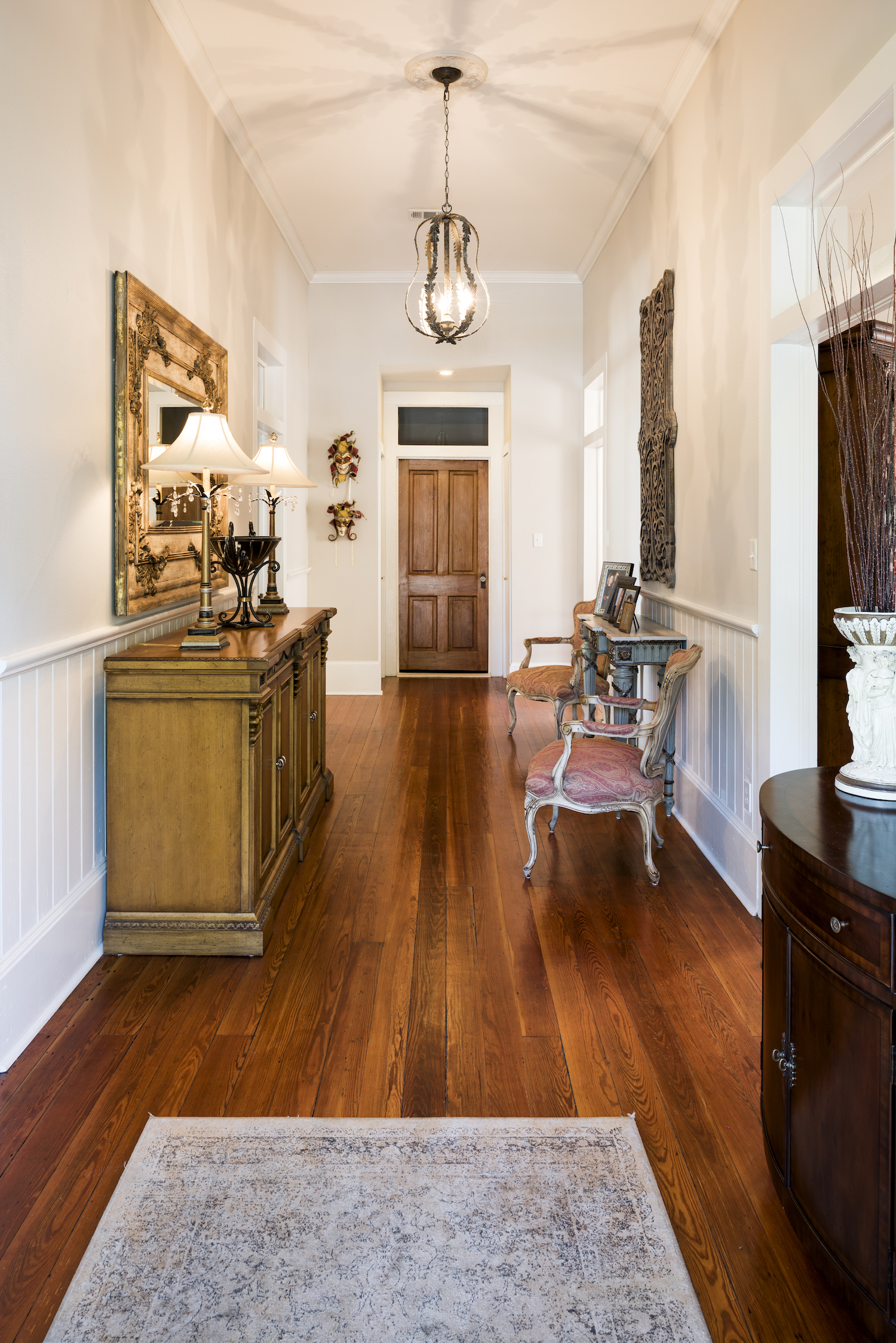 Rowbatham said that the contractor from whom she purchased the property should be credited with saving this gem. “When he came in to restore the house, the ceiling was dropped to 8 feet everywhere, and there was old carpet in every room. He tore out what had been added in the mid-1900s and found transoms over every door and these original heart pine floors,” she said.