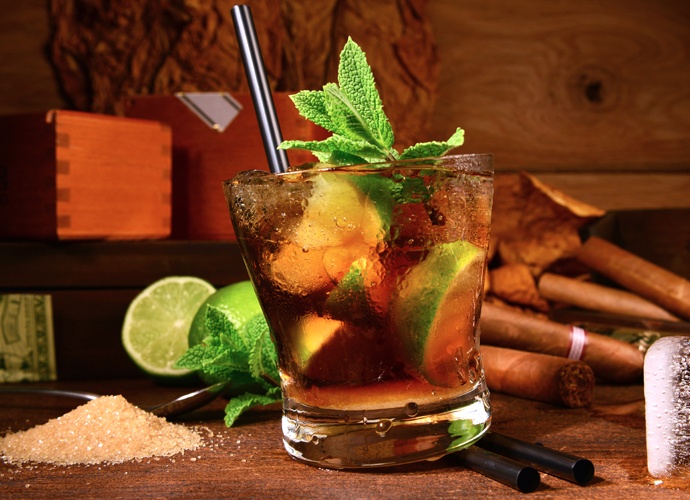 Fill a highball glass with ice, then add lime juice and silver rum. Stir until mixed well. Pour in the cola and stir lightly. Garnish with a lime wedge and add a sprig of mint.