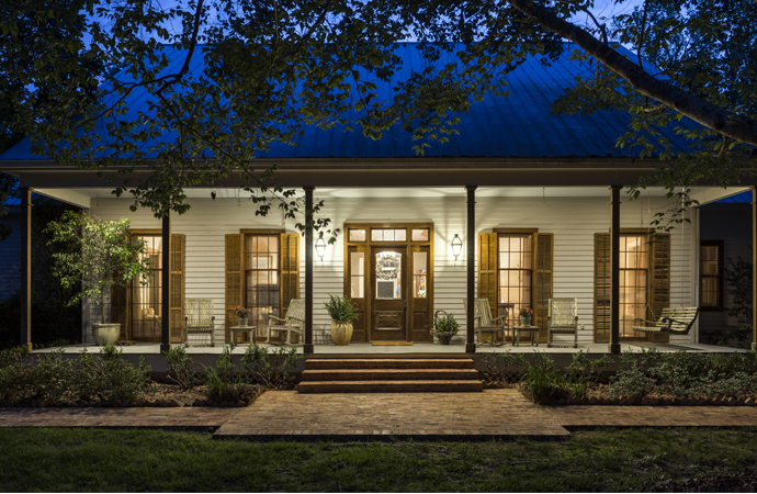 A family friend who was a decorating enthusiast turned them on to the light neutral color Manchester Tan from Sherwin Williams, and they’ve used it throughout the house. It provides a great backdrop of balance for all the golden honey tones of the heart pine flooring that runs through the front part of the house, where various textures masterfully blend together in comfortably elegant harmony. French doors that open from room to room give an airy flow and a sense of age to the building. Gently worn wooden furniture mixes with occasional painted pieces in a well-versed balance of texture and color.