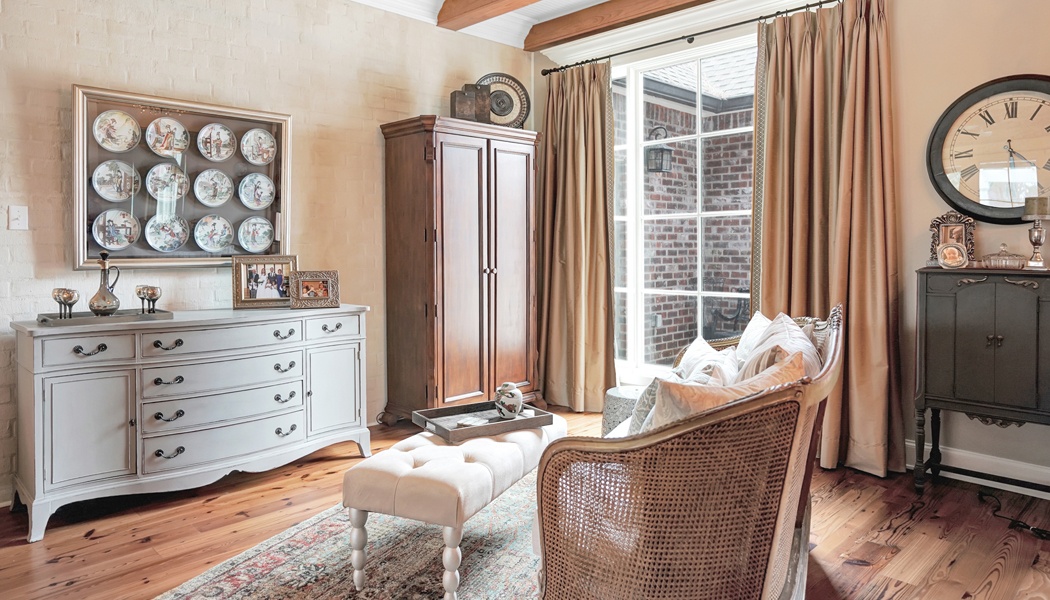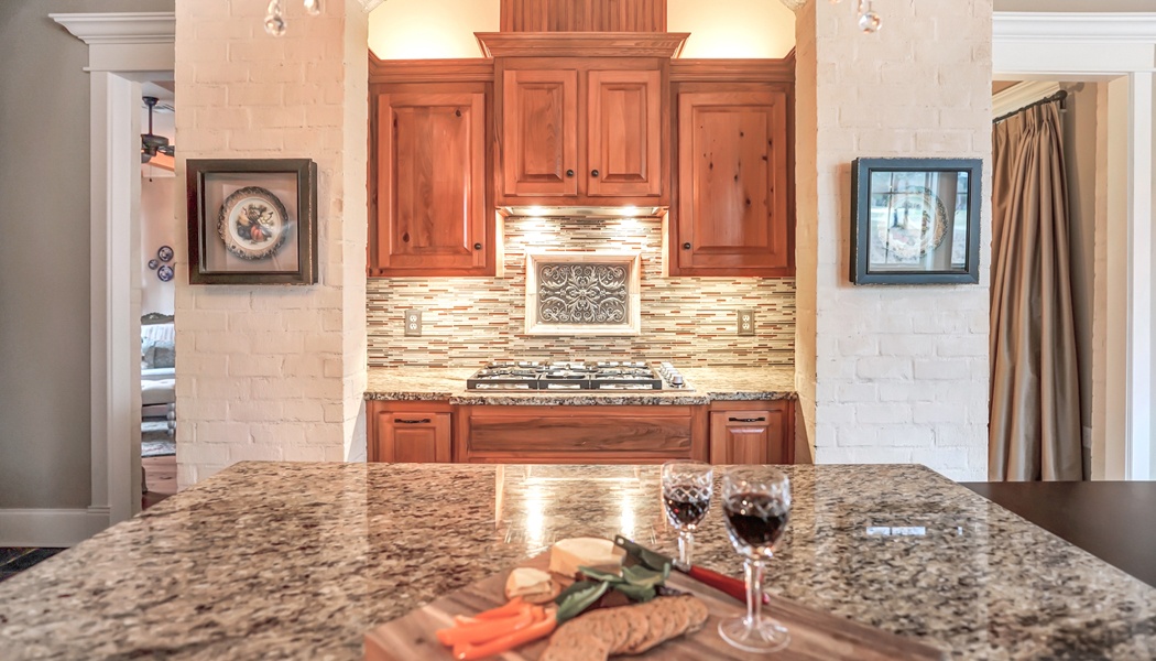 When I first walked into this home in Carter Plantation, I certainly didn’t think “this house needs a makeover.” The owner’s taste is impeccable and that showed even early on in the project. But on our first walk through the kitchen and living rooms, I realized why I was there. The entire house was clad in pine molding. It was not antique heart pine, mind you, but the regular yellow stuff, and the brick inside the house had been washed with a dark brown stain—making it darker than it originally was.