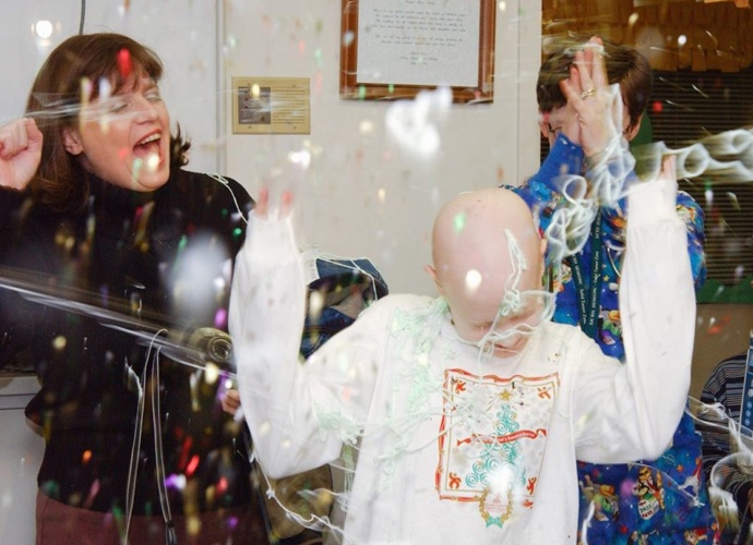 Although memorabilia and remembrances highlight Hayley’s unbridled optimism, energy and gratitude – for example, photos document the dance party she staged for hospital staff reflecting her ‘show-must-go-on’ attitude – her surgery, treatments and physical therapy were serious and grueling. Hayley endured an operation to remove her knee and part of her thigh bone, replacing them with prostheses including an artificial femur which could be expanded without future surgeries. Although not painless, St. Jude’s work with innovative technology would give her a much better quality of life. She also began a year of in-house, intensive chemotherapy. Her enthusiasm for St. Jude, despite draining side effects, was rewarded with the unofficial titles of assistant receptionist and blood donor room gratitude administrator.