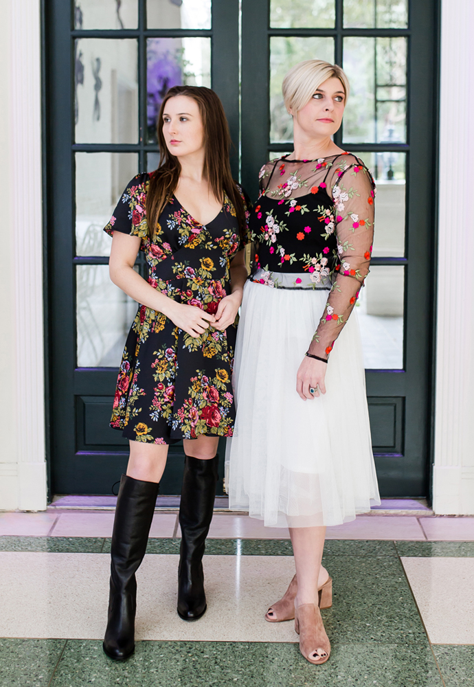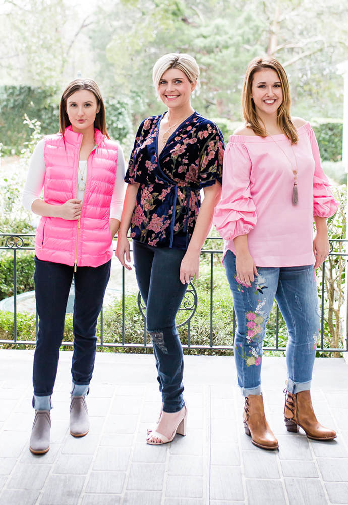 Summer – Ivory faux-suede cropped jacket, $54, black deep v-neck slip dress with sequined and embroidered accents, $69 – Columbia Street Mercantile