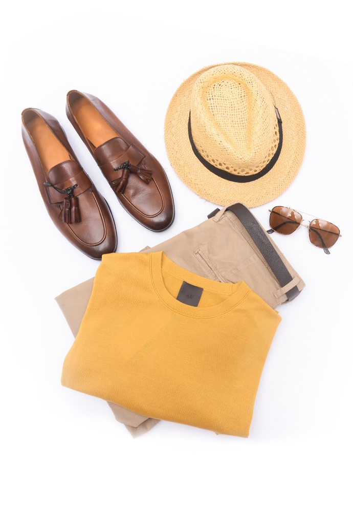 Chambray shirts and lighter weight twills for chinos and shorts are a must for afternoon Zoom sessions and outdoor meetings. Accessorize with necessary sunglasses, distressed leather bags and belts, and even throw in a hint of color. And don’t forget the footwear—deck shoes, espadrilles and comfy leather slip-ons are what’s on this summer’s fashion menu.