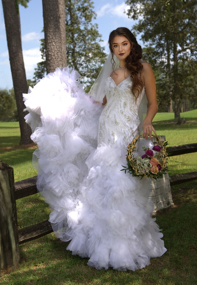 We would like to thank everyone who took part in our special photo shoot which took place at Carter Plantation in Springfield, where Event Director Lauren Sadler graciously gave us full access to the beautiful grounds and facilities. Our selection of exquisite bridal gowns was provided by Tricia’s Bridal Boutique in Franklinton and Olivier Couture Bridal Boutique in Mandeville. The accompanying floral designs were created by our Enterprising Woman, Samantha Bates, owner of Especially For Your Florist in Ponchatoula. Wildflower Hair and Makeup owner Karen Carson and her artists, Allyssa Hutchinson and Bobbi Wamsley, beautifully styled our bridal models’ hair and makeup. And all of the magic was captured by photographer Crystal LoGidiuce as we shuttled from location to location within the spectacular Carter Plantation grounds on a very sultry September day.