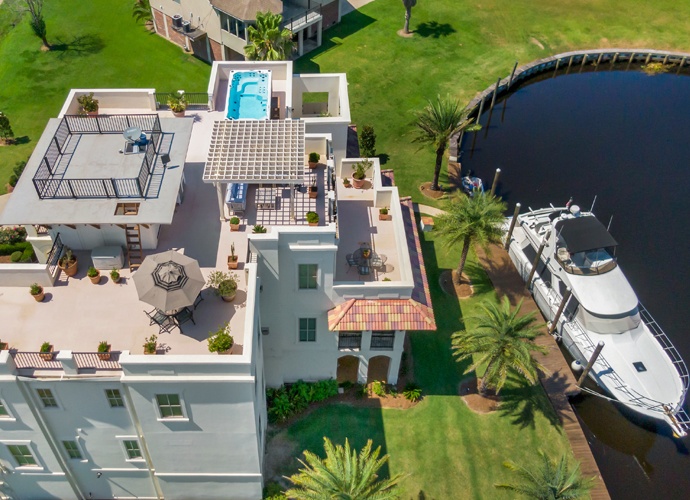 Imagine cocktail glasses clinking at sunset on your rooftop entertainment area — the highest point overlooking town — with a view of the Tchefuncte River rolling into Lake Pontchartrain as purple martins fly into the Madisonville marsh chasing their evening meal. Egrets wing back to their roost as dusk turns to dark and the night sky offers staggering stargazing from the hot tub or perfectly perched sitting areas. A variety of riverside options for tomorrow’s brunch are walking distance through the quaint town past the Maritime Museum, library, parks, tennis courts, shops and colorful cottages. Then, it’s back to your Madisonville home for an afternoon boat ride from the backyard dock right through your private waterway down the river, into the lake and beyond. Because your new home is located south of the Madisonville bridge, your cruising time isn’t dependent on the bridge’s opening schedule. Relax. You’re free to set sail whenever you like.