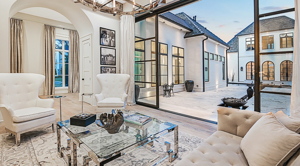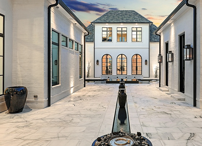 Greg, who builds high-end custom homes throughout the New Orleans area, has made his personal residence the crown of his portfolio. Double steel doors open into a double-height foyer, which sets the tone for the experience of the interior. No detail has been missed, but the European-style palette lacks the busy flavor that is sometimes seen in homes with this influence. “We both love being in France, but we didn’t want all the ‘gingerbread’ in our own house. This is my version of a simplified, modern chateau.”