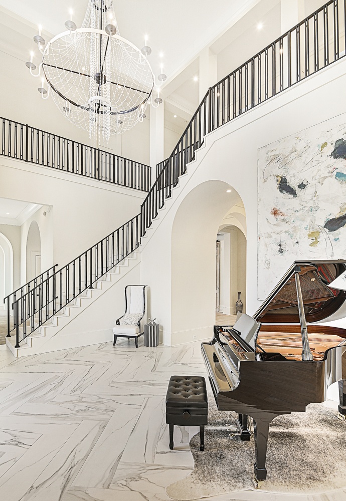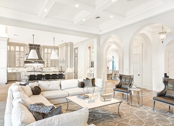 The two Bengal cats who call this beautiful place home generously allow the Troyer family to reside with them in the cul-de-sac of a private neighborhood in Jefferson Parish. Fortunately, their gorgeous coats are complemented by the neutral, timeless color palette inside the home. This grand home, owned by builder Greg Troyer and his wife Heather, punctuates the end of a street filled with numerous elegant houses and perfectly manicured lawns. With six children and all that entails in life commitments and schedules, coming home to this place feels like the ultimate exhale at the end of a hectic day.