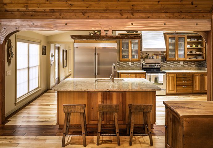 Miles away from the heavy traffic and congestion of the central Northshore, a house with humble beginnings has blossomed into a showpiece for homeowners Brett and Laura Thibodeaux. The couple relocated from the Southshore more than 20 years ago and were looking for a piece of land where they could live and work. When they bought the property in Waldheim, Laura says, “I saw this cute little cottage, and all he saw were woods full of deer, ready to hunt in.”