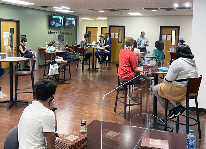 Elizabeth explains that the program is project based and a blend of different classes and guest speakers where budding entrepreneurs connect with local professionals in key areas including accounting, graphic design, legal, and marketing. “Classes are held in Southeastern’s technology lab where students do research and hash out a business plan that they’ll present to real investors. We also go on field trips to several local businesses and work on the presentations to pitch to get seed money to launch. Each person who successfully completes their pitch gets some kind of investment.”